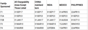 All Mexico F2A numbers are exempt from the per-country limit. The family-preference visa filing dates are as follows: